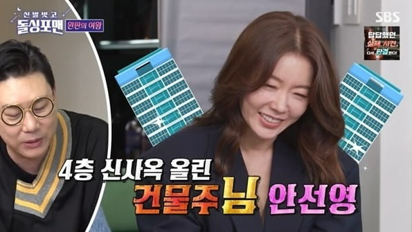 최근 SBS 예능 ‘돌싱포맨’에서는 천하장사 이만기, 개그우먼 안선영, 배우 오민석이 게스트로 출연했고, 이날 이상민은 “안선영이 마포에 4층 신사옥을 올렸다”고 알렸는데 안선영은 “지방에서 올라와 반지하부터 시작해 부동산 재테크에 관심이 많았다. 어릴 때부터 재테크를 열심히 하고 공부도 많이 했다”고 말했습니다.