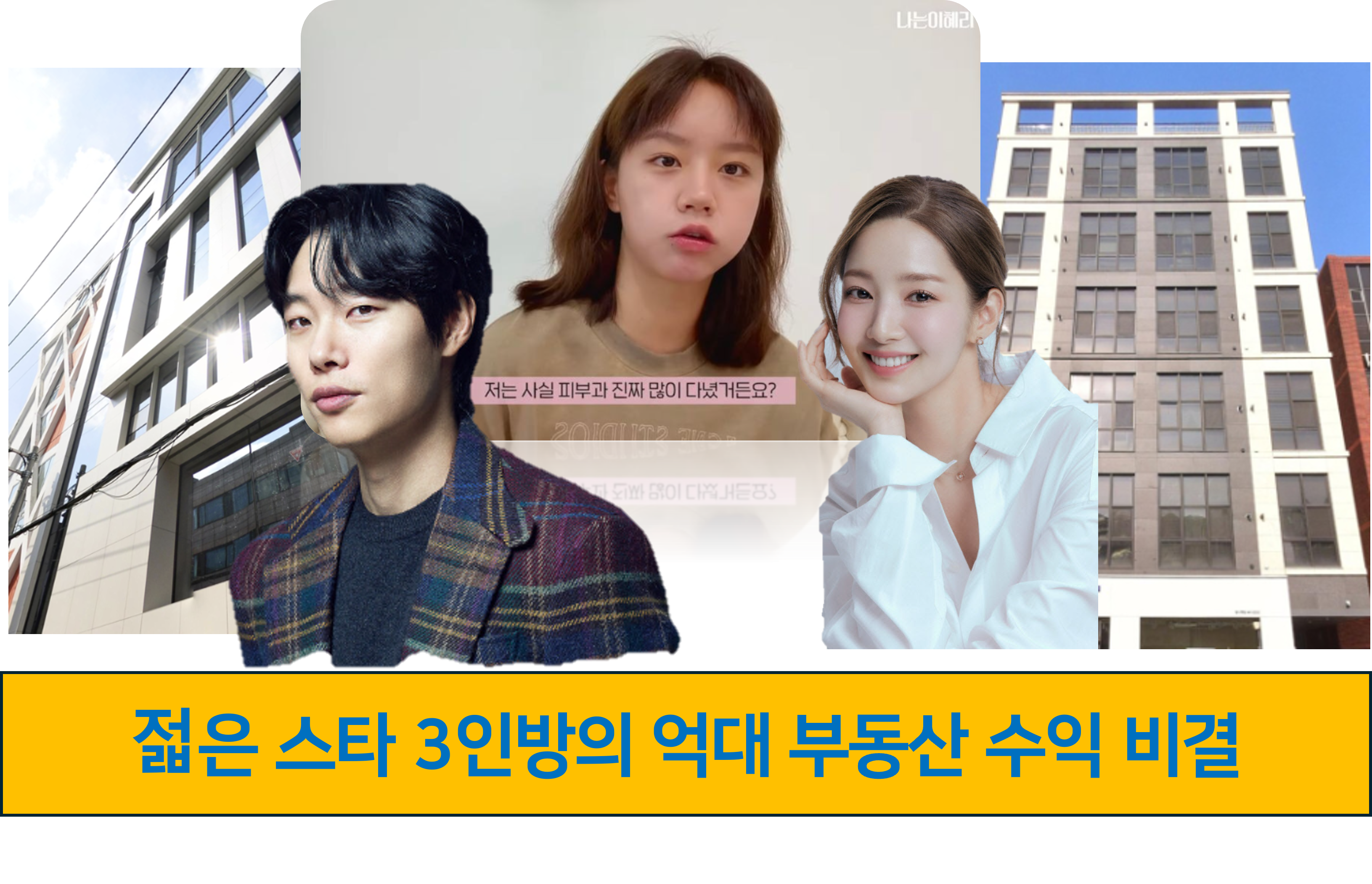 요즘 연예인 소식 중 가장 빈번하게 등장하는 내용이 "시세차익 00억 건물주" 라는 말 같습니다. 잘 키운 건물로 억대 시세차익을 거두는 젊은 스타들이 늘고 있는데 최근 가장 핫한 연예인 3명을 소개합니다. 바로 류준열, 혜리, 박민영의 부동산 수익 창출 이야기 입니다.