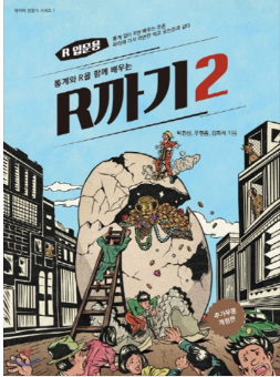 [R까기2]는 빅데이터 분석을 하는데 필요한 통계 지식을 단기간 내에 채득 하고,, 재밌는 예제를 통해 데이터 분석의 유의미한 결과를 도출하는 점이 재밌는 교재입니다.