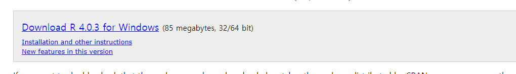 6. Download R 4.0.3 for Window를 클릭합니다 (R의 버전의 따라 뒤 숫자는 변합니다.)